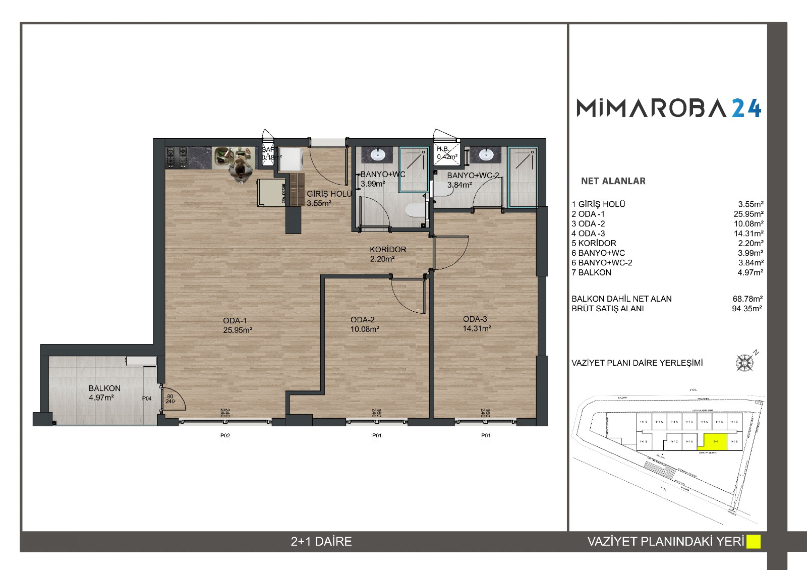 Mimaroba24 2+1 I Tipi (Ebeveyn Banyolu)